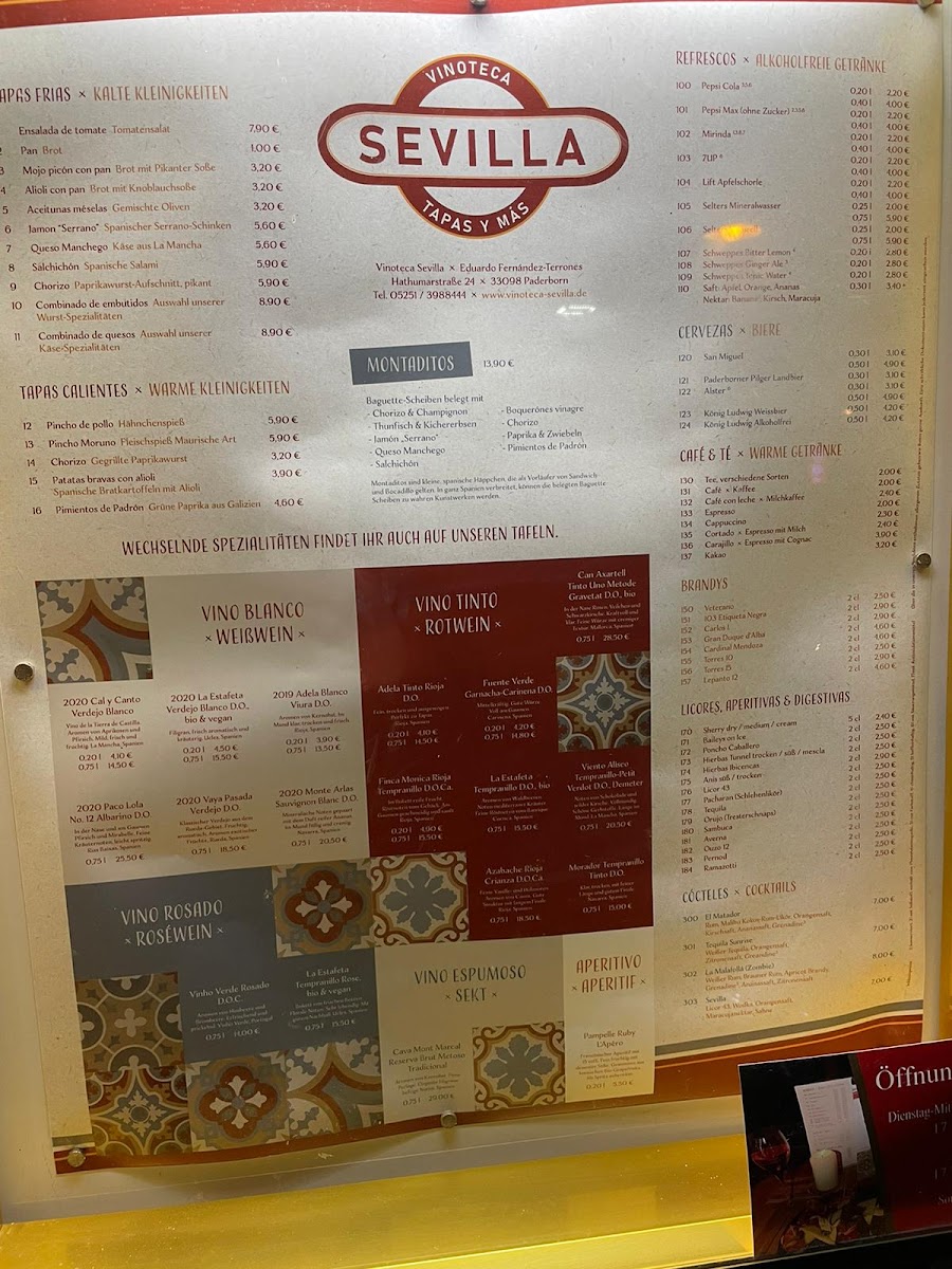 Welcome to Vinoteca Sevilla Bar, a charming little tapas haven nestled in the heart of Paderborn. Located at Hathumarstraße 24, this cozy bar captures the essence of Spain with its inviting ambiance and attentive service. Visitors are treated to an array of delightful tapas, from savory olives to a selection of vegan options. Sip on refreshing Rioja wine or chilled Cerveza as you unwind in this intimate setting, reminiscent of a traditional Spanish eatery.